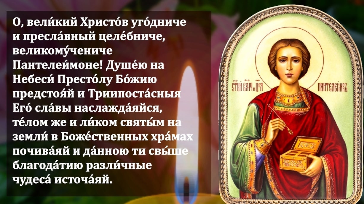 Пантелеимон – небесный покровитель медиков. Его профессионализм в сочетании с верой в Бога давал блестящие результаты. Его жизнь – яркий пример того, как доктор может служить своему пациенту. К сожалению, и раньше, и сейчас находились врачи, которые видят в больном объект наживы и которым абсолютно безразлична судьба пациента. Но есть и другие – те, на которых держится медицина. Те, кто ночами стоят у операционного стола, спасая жизни. Те, кто пешком обходят участки, получая взамен нищенскую зарплату. Те, кто не вступает в сделку со своей совестью и на личные средства помогает людям. Те, кто с молитвой и верой в душе начинают свою смену. Церковь знает много врачей, до конца выполнивших заповедь Христа о любви к ближнему. Это Косма и Дамиан, Кир и Иоанн, Агапит и наш недавний современник профессор Валентин Войно-Ясенецкий, более известный как архиепископ Лука.