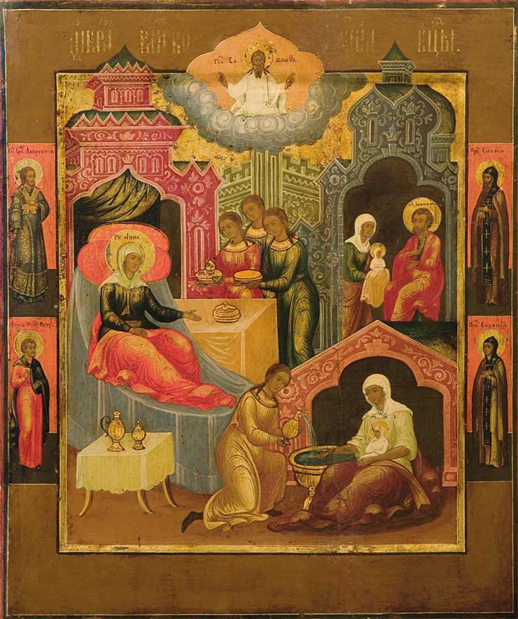 Праздник Рождества Пресвятой Богородицы основан на Церковном Предании. Существует так называемое Протоевангелие Иакова, написанное в II веке. В нем мы читаем, что Мария родилась от благочестивых родителей, Иоакима и Анны. Иоаким был выходцем из царского рода, а Анна – дочерью первосвященника. Они дожили до преклонных лет и были бездетны. Это было источником скорби для пары и вызывало общественное порицание.