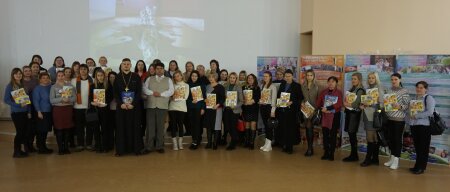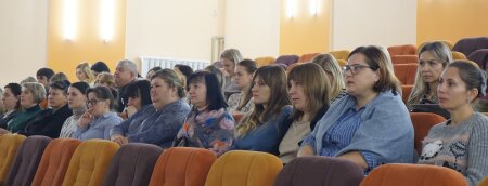 Очень внимательно слушали педагоги выступление Елены Ярошевич, специалиста по работе с передвижными выставками "За жизнь, нравственность и семейные ценности" и "Мы рисуем мир семьи", сотрудника Благотворительного фонда имени Алексея Талая г.Минска.