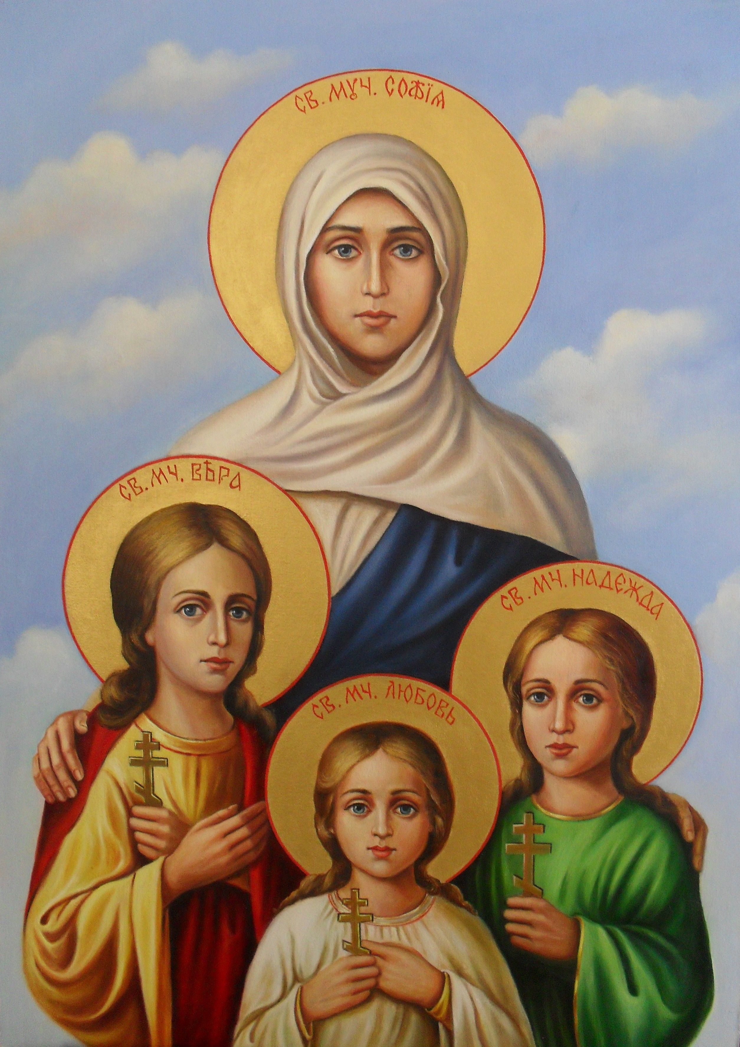 Вера, Надежда, Любовь и матерь их София – раннехристианские мученицы, жившие во 2-ом веке нашей эры в Римской империи. Известно, что София была родом из Милана. Вдова-христианка и своих дочерей, названных в честь трех добродетелей, воспитывала в благочестии и любви ко Христу.