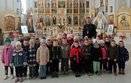 Экскурсия для малышей была организована для воспитанников старших групп Клецкого детского сада №2 в рамках Недели родительской любви. Детишек радушно встретил настоятель прихода Воскресенского храма, благочинный Клецкого церковного округа иерей Геннадий Белоус.