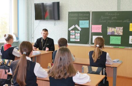 В Неделю родительской любви иерей Геннадий Белоус встретился с учащимися СШ №3 и №1 г.Клецка