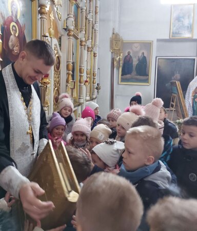 Но в последние годы все изменилось, и сегодня в школах нашей страны дети с удовольствием обучаются на факультативных занятиях, изучая не только Православие, но и уроки доброты, милосердия, любви. А в качестве практического занятия дети часто посещают храмы города. Например, 23 ноября ребята 1-го и 2-го классов СШ №1 г.Клецка побывали в храме Воскресения Христова, где их душевно встретил благочинный Клецкого церковного округа иерей Геннадий Белоус.
