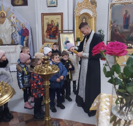 Ребята с интересом слушали батюшку и его рассказы об иконах и о том, чьи лики на них изображены; о церковных свечах, и о том, для чего их зажигают в храме. С удовольствием дети сами ставили свечи в подсвечники и пробовали осенять себя Крестным Знамением.