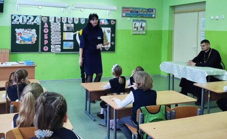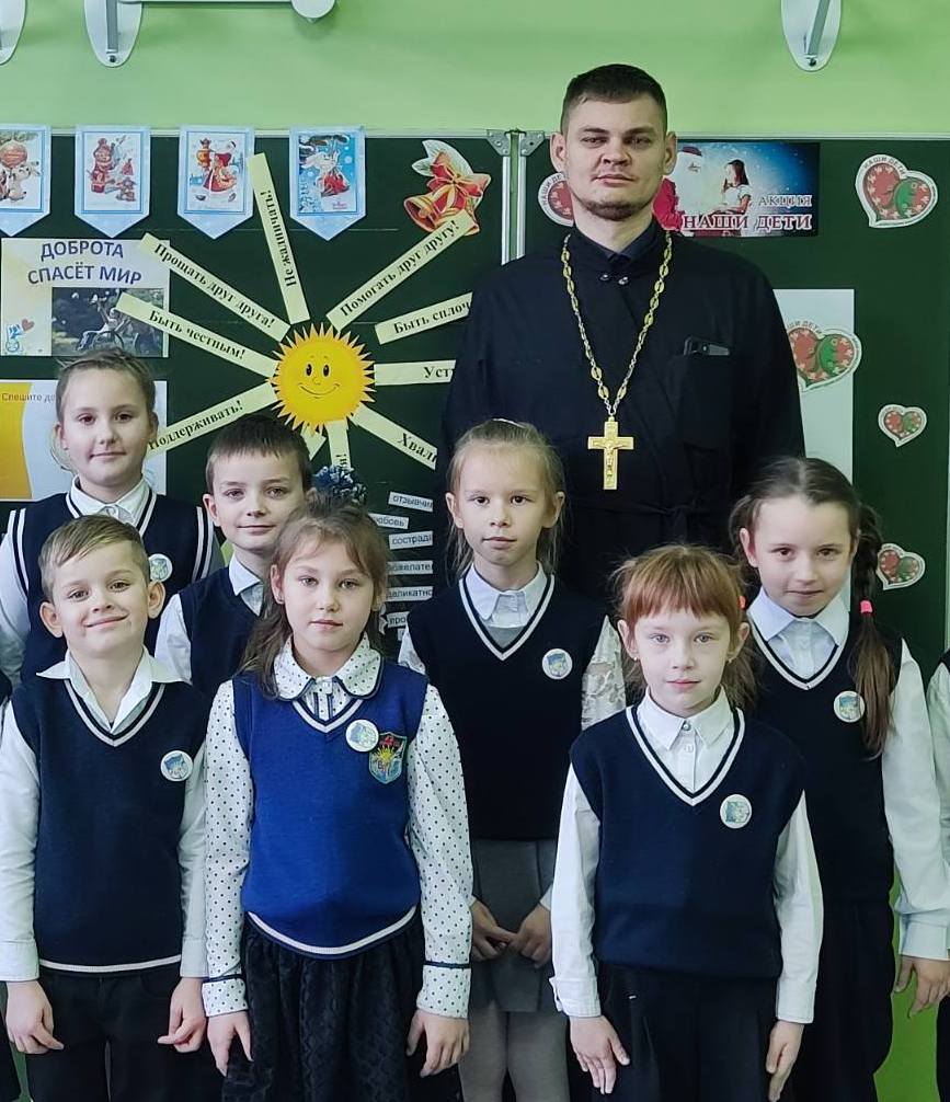 О добре и милосердии говорил иерей Геннадий Белоус с дошколятами и учащимися городской школы