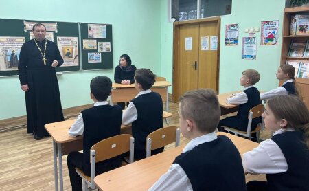 О преподобной Евфросинии Полоцкой рассказал школьникам протоирей Евгений Вечорко