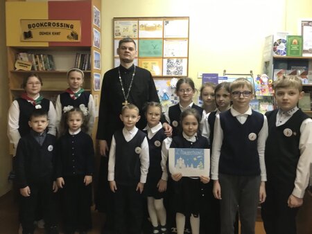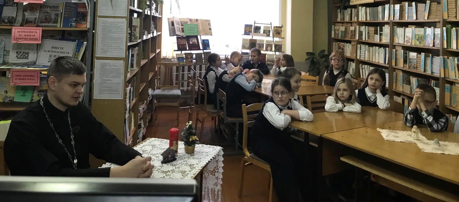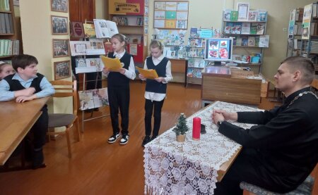 Тему «Рождественские встречи» библиотекарь Наталья Вечорко определила таковой не случайно. Во-первых, православные верующие в этот период празднуют Святки, а во-вторых, к ребятам пришел благочинный Клецкого церковного округа иерей Геннадий Белоус, настоятель прихода храма Воскресения Христова.
