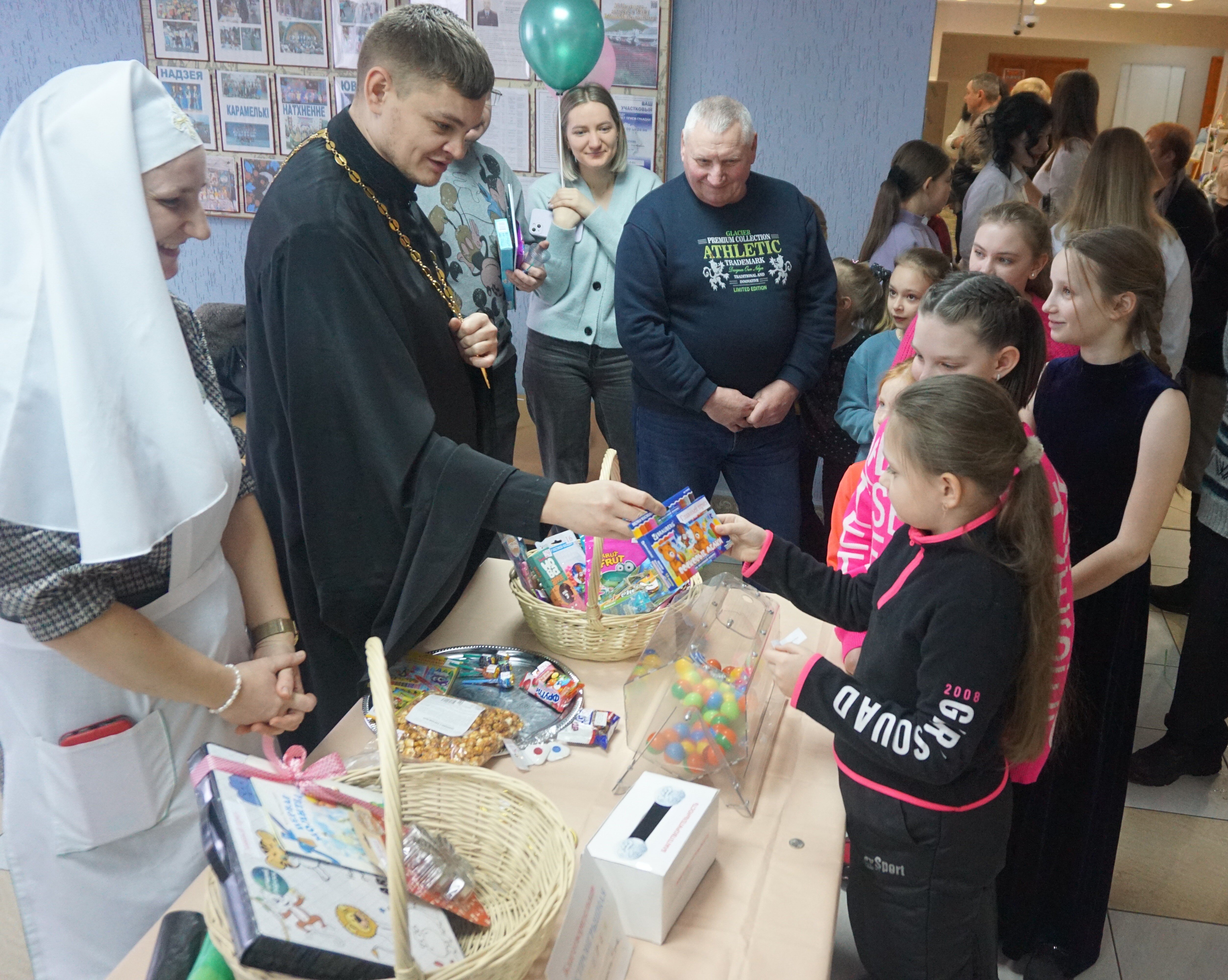 По традиции, сестры милосердия сестричества святой блаженной Валентины Минской прихода храма Воскресения Христова г.Клецка организовали благотворительную акцию “Сладость на радость”. Наибольшей популярностью у детворы пользовалась “Беспройгрышная лотерея”. Учитывая добрый азарт детей и взрослых, в этот раз количество шаров увеличели вдвое в сравнении с такой же акцией, что проводилась год назад, и в течение часа было разыграно около 100 подарков!