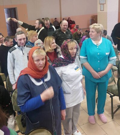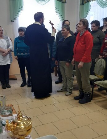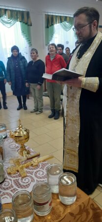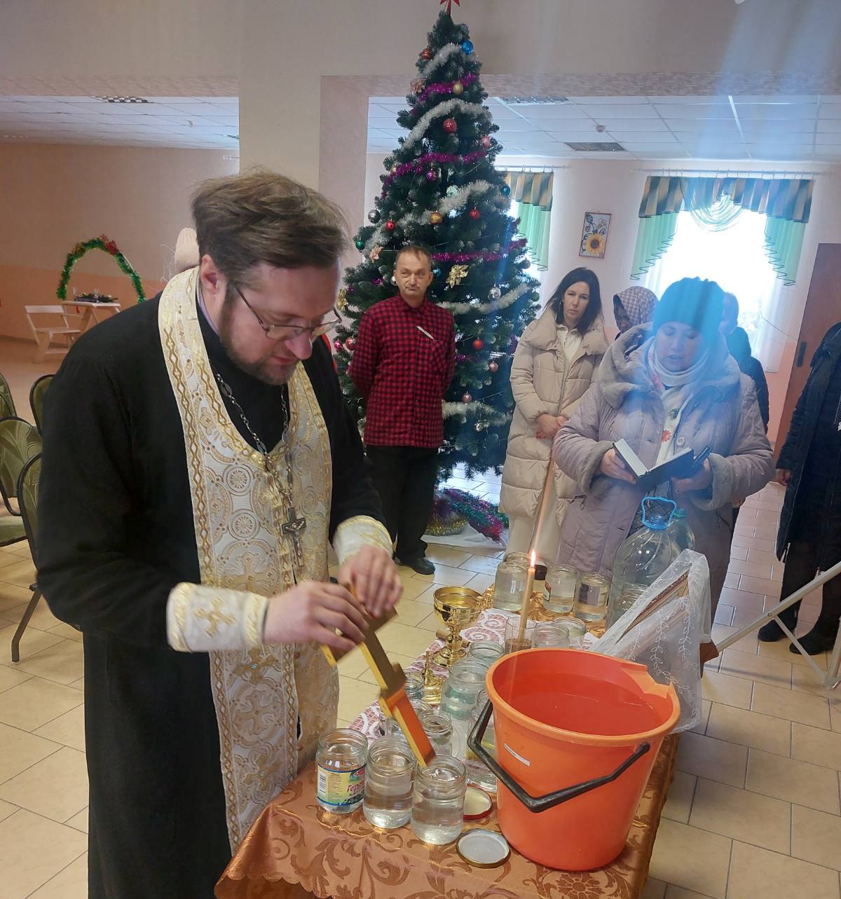 По окончании молитвы священник поздравил всех с Крещением Господним, выразил слова благодарности работникам дома-интерната за заботу о людях с непростой судьбой, пожелал всем помощи Божьей, здоровья, мира, терпения, согласия и окропил всех Крещенской водой.
