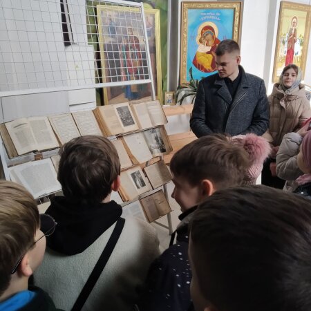 В настоящее время в храме находится выставка православной литературы. Об уникальных печатных изданиях рассказал батюшка ребятам, и ответил на все их вопросы.