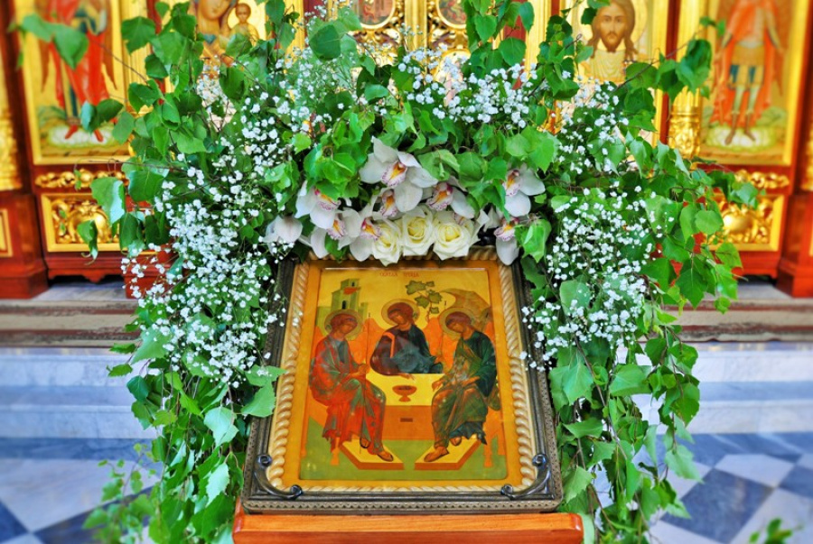 Храмы на Троицу украшают зелёными ветвями березы и цветами. Священнослужители совершают службы в праздничных одеждах – белые меняют на зеленые.