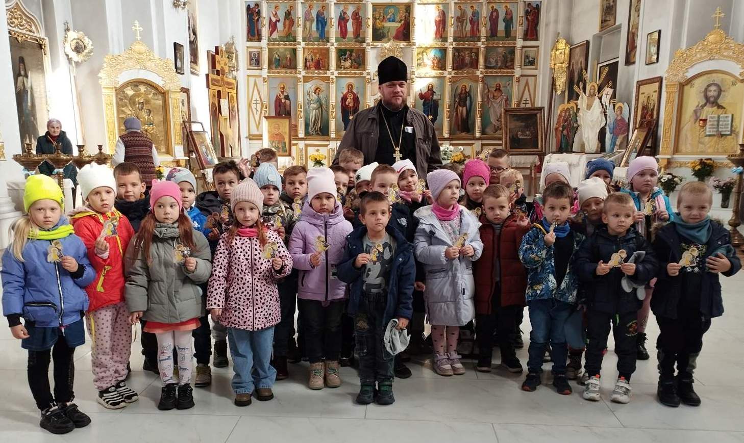 На память о посещении храма отец Андрей подарил каждому воспитаннику детского дошкольного учреждения бумажного ангелочка.