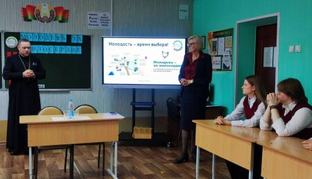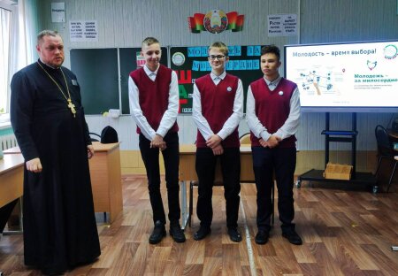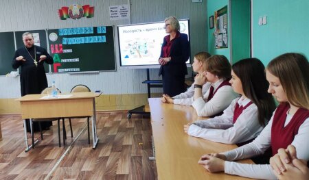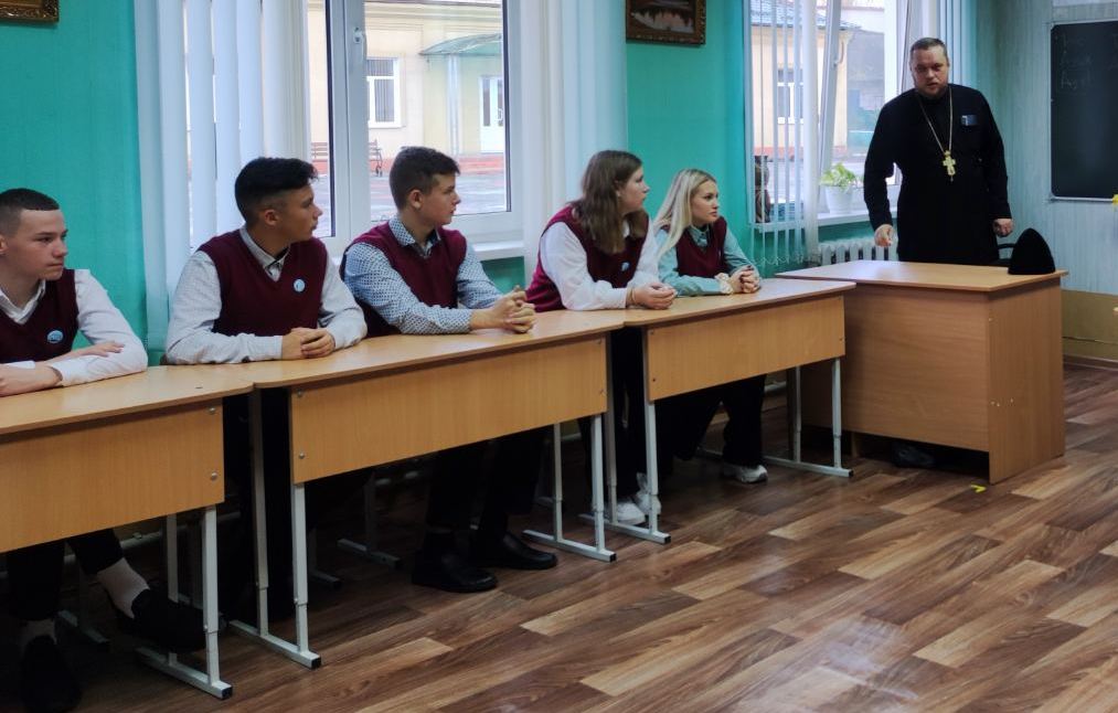 Духовно-нравственную беседу со старшеклассниками провел благочинный Клецкого церковного округа, настоятель прихода храма Воскресения Христова г.Клецка иерей Андрей Евшель.