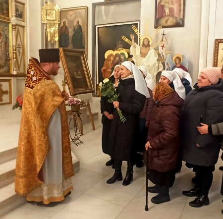 Особые поздравления батюшка принимал от деток, воспитанников Воскресной школы при храме и сестер милосердия сестричества в честь святой блаженной Валентины Минской. Многие и благая лета Вам, отец Андрей!