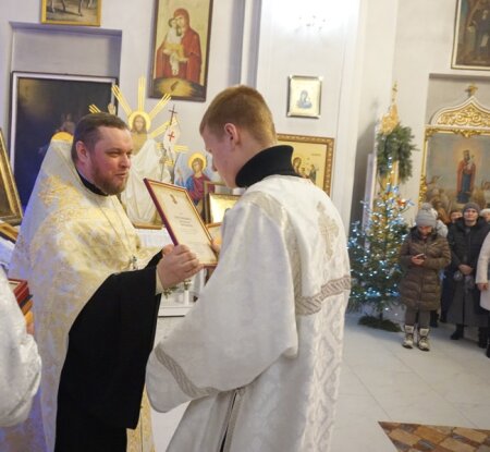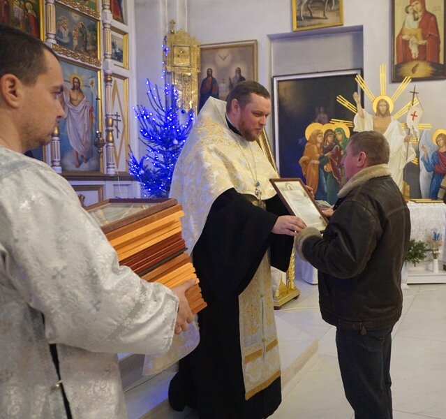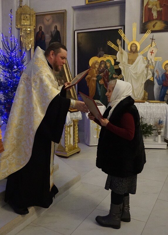 Поздравляя прихожан храма Воскресения Христова г.Клецка с Рождеством Христовым, настоятель прихода храма - благочинный Клецкого церковного округа иерей Андрей Евшель отблагодарил Грамотами "во внимание к усердным трудам во славу Матери Церкви Христовой и Клецкого благочиния" всех благоустроителей, благоукрасителей, усердно несущих труды в храме. Искренние слова благодарности батюшка говорил всем, кого поздравлял также с Рождеством Христовым.