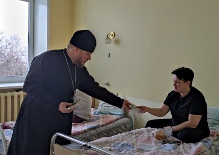 Много добрых слов и пожеланий говорил отец Андрей и сестры милосердия пациентам и персоналу Клецкой центральной районной больницы. Каждому от гостей достались сладкие угощения, но главное – духовные наставления, что были сказаны священнослужителем для укрепления их сил.