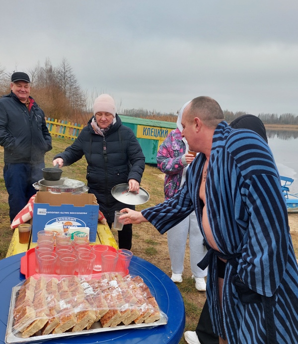 Об этом говорил собравшимся сегодня на водоеме благочинный Клецкого церковного округа иерей Андрей Евшель. Много было клетчан, получивших благословение у батюшки, омыться в полынье. По словам тех, кто в праздник Крещения Господня спускался в воду по деревянным ступенькам, они делают это из года в год и верят, что таким образом смывают с себя тяжесть недугов, потому что входят в воду по благословению священника и с верой в Господа нашего Иисуса Христа.