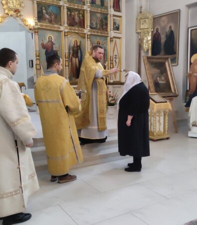 Был отслужен молебен, где вместе со священником прихожане молились Господу о здравии и долгоденствии сестры Натальи, о ее укреплении в служении, просили милости и помощи Божией на многие и благие лета.