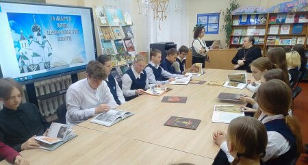 Ребята смогли рассмотреть книги, которые библиотека предлагает своим читателям, задать вопросы священнослужителю и получить на них ответы.
