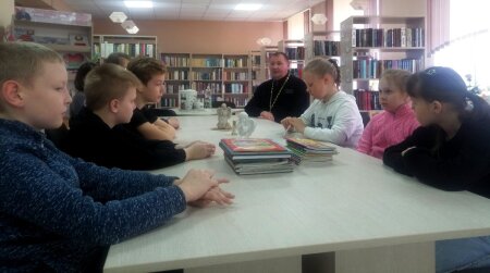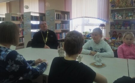 Настоятель прихода храма священномученика Дионисия Ареопагита аг.Заостровечье протоиерей Евгений Вечорко, приглашенный на это мероприятие, объяснил роль православной книги в жизни детей и взрослых. Рассказал батюшка юным читателям также о значении и важности для каждого православного человека приближающихся великих праздников - Благовещении Пресвятой Богородицы и Воскресении Христовом.