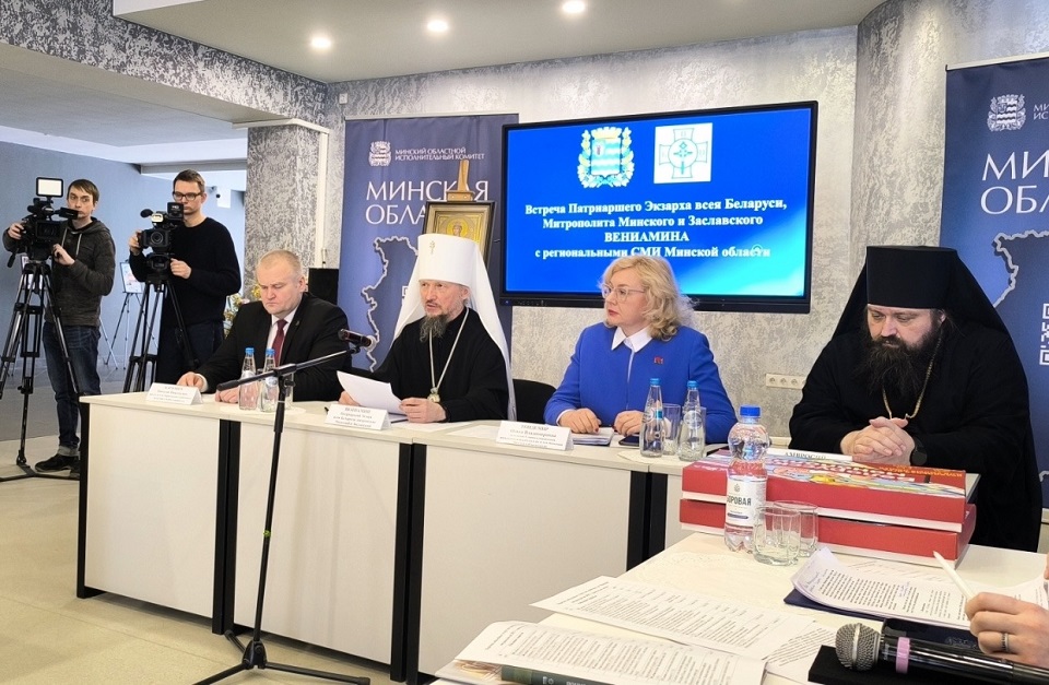 Обращаясь к собравшимся, архипастырь отметил: «Радует возможность встретиться и обсудить тему сегодняшнего дня: взаимодействие Церкви с региональными СМИ Минской области. Мы видим, что в современном, бушующем мире, мы, слава Богу, сохраняем мир и спокойствие в нашей стране. И думается, что в этих обстоятельствах нам можно выстоять, именно сохраняя единство нашего народа, опираясь на духовно-нравственное наследие предыдущих поколений».