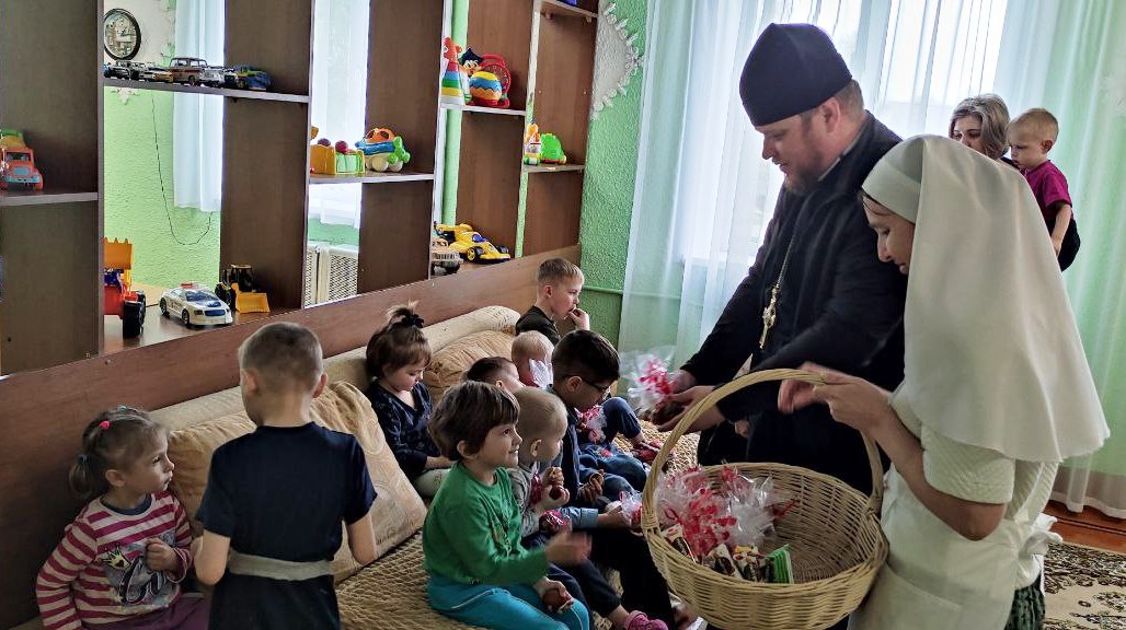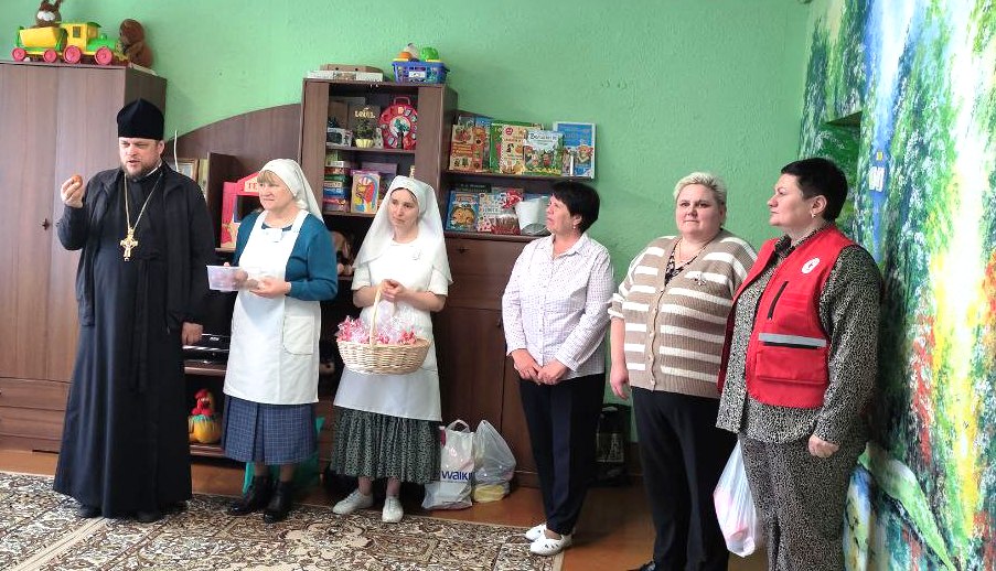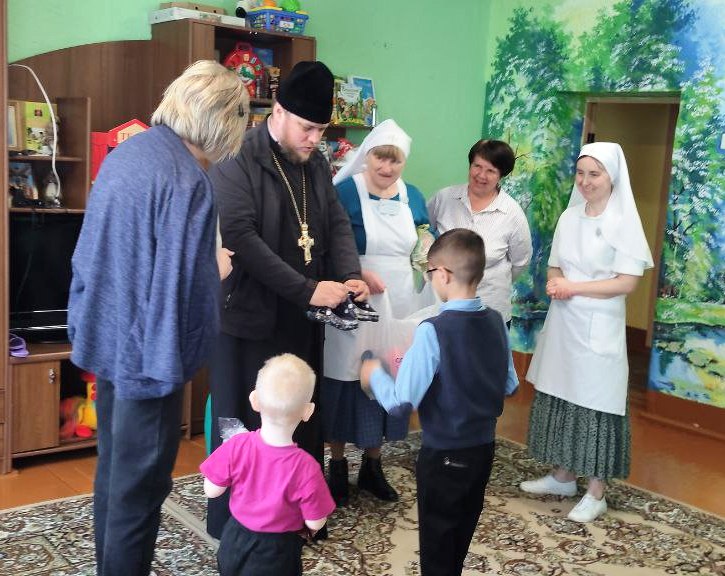 Благочинный Клецкого церковного округа иерей Андрей Евшель и сестры милосердия поздравили воспитанников приюта с Пасхой