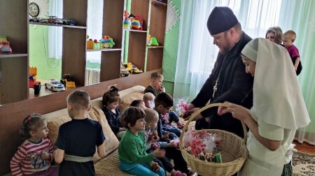 Традиционно не с пустыми руками приехал батюшка и его спутники в приют. Кроме крашеных освященных яиц, которым были очень рады малыши, гости привезли в приют угощения и нужные для ухода за ребятами вещи.