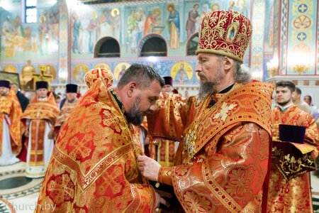На малом входе Патриарший Экзарх ко дню Святой Пасхи и во внимание к усердным трудам во славу Церкви Христовой удостоил клириков Слуцкой епархии богослужебно-иерархических наград.