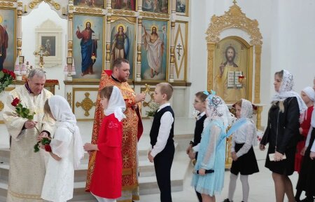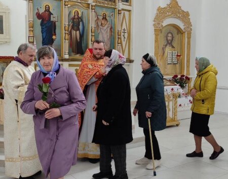 В воскресный день, 4 мая, когда Православная Церковь празднует Неделю святых жен-мироносиц, настоятель прихода Воскресенского храма иерей Андрей Евшель поздравил всех прихожанок – взрослых и детей – с этим красивым Праздником.