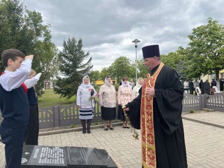 Учащиеся и педагоги Заостровечской средней школы, представители трудовых коллективов и местные жители приняли участие в митинге, который прошел у братской могилы, где захоронены советские воины и партизаны, погибшие в годы Великой Отечественной войны в этой местности.