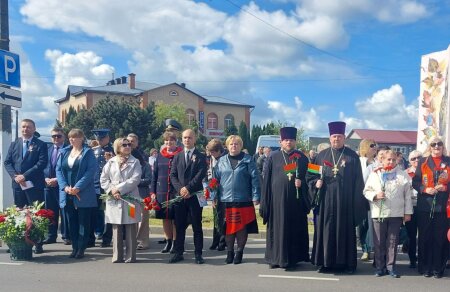 А в торжественном митинге и праздничных мероприятиях, которые развернулись в центре города по случаю юбилейной даты, в многолюдной колонне рядом с руководством Клецкого района, присутствовали так же благочинный Клецкого церковного округа иерей Андрей Евшель и помощник благочинного по взаимодействию с Вооруженными Силами и другими воинскими формированиями Республики Беларусь протоиерей Евгений Вечорко.