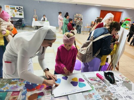 В празднике приняли участие и сестры милосердия сестричества в честь святой блаженной Валентины Минской храма Воскресения Христова. Ими было предложено ребятам и их родителям много интересного. А еще каждый мог подать записку о здравии родных и близких, взять для семейного чтения буклеты о семье.