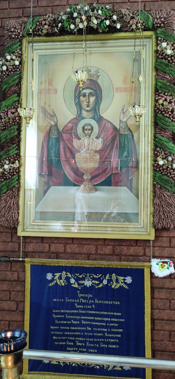 Именно в этой сельской церкви находится для поклонения чудотворная икона Божией Матери «Неупиваемая Чаша», общецерковное празднование которой совершается 18 мая (5 мая по старому стилю).