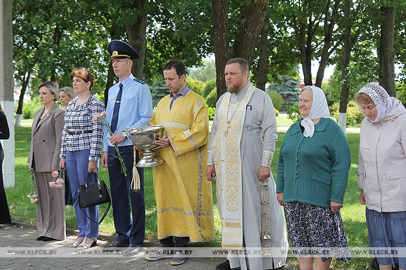 За души убитых в годы войны отслужил заупокойную литию благочинный Клецкого церковного округа иерей Андрей Евшель. Батюшка призвал клетчан не только не забывать о подвигах предков, погибших на войне, но и молиться за их души, потому что они молят Бога за каждого живущего на Земле.