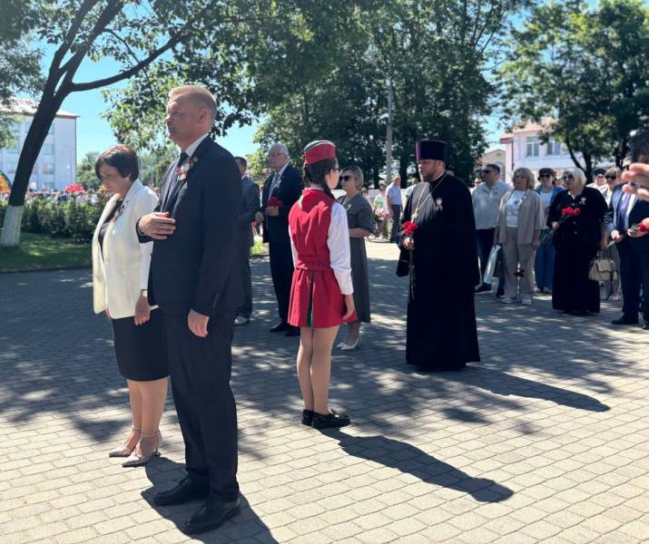 На площади Маяковского проходило торжественное открытие праздника и митинг «Живая память о прошлом» с участием трудовых коллективов, районных властей и гостей из российского города-побратима Кашира, благочинного Клецкого церковного округа иерея Андрея Евшеля.