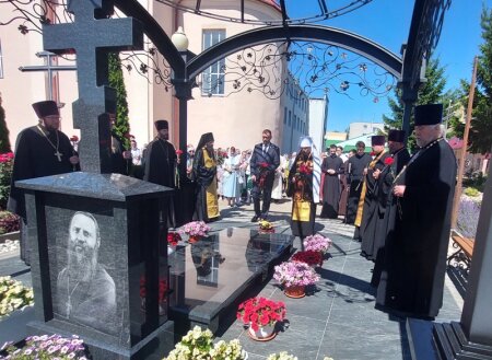 В завершение Митрополит Вениамин совершил заупокойную литию на месте погребения бывшего настоятеля Воскресенского храма протоиерея Матфея Белоуса.