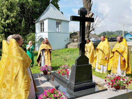 На месте погребения бывшего настоятеля храма святого пророка Иоанна Предтечи в д.Садовая иерея Андрея Парфенчика была отслужена заупокойная лития.
