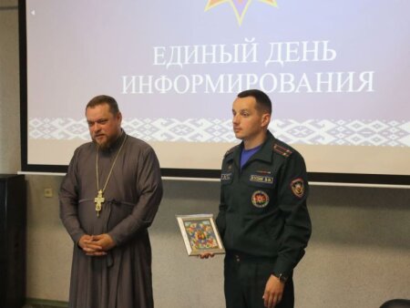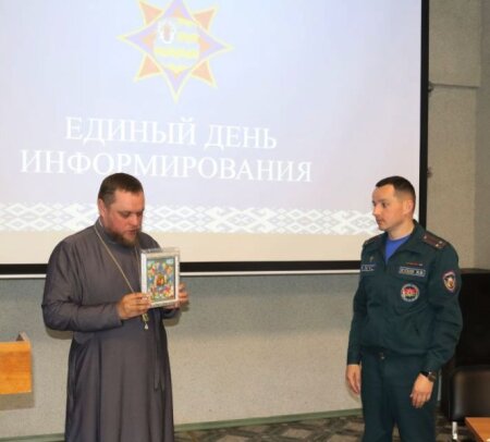 С работниками Клецкого РОЧС встретился иерей Андрей Евшель