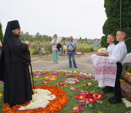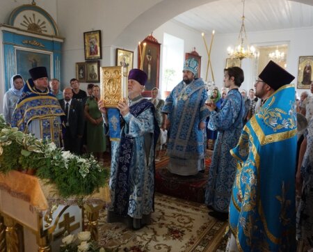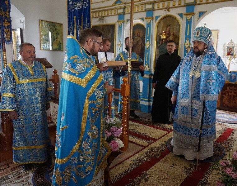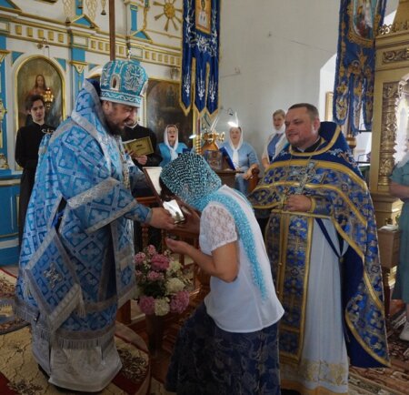 Покровский храм в воскресный день был особенно украшен живыми цветами. Было видно, что клетчане с особой любовью и трепетом не только готовились к приезду высокого гостя, но прежде с почтением и благоговением украсили Дом Божий, благодаря Господа и Матерь Божью за ту милость, которую люди ощущают каждую минуту.