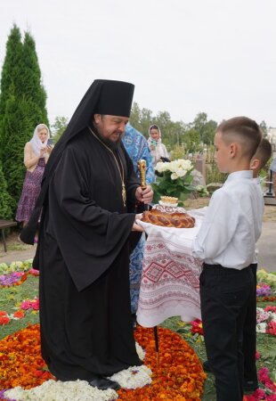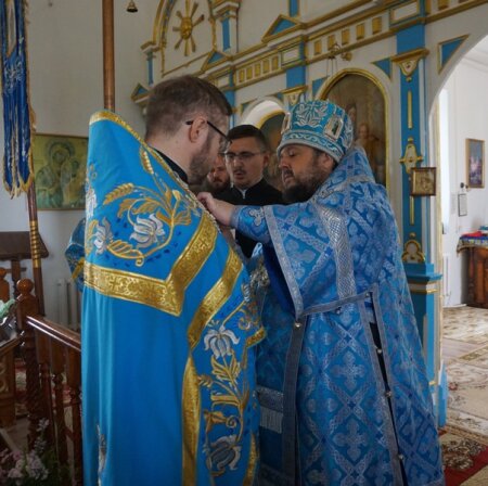 Настоятель прихода храма Покрова Пресвятой Богородицы протоиерей Андрей Гладкий обратился к епископу Несвижскому Авксентию с приветственным словом, в котором поблагодарил Его Преосвященство за посещение прихода и совместное богослужение. На молитвенную память архипастырю были преподнесены цветы и дары гостеприимной клецкой земли.