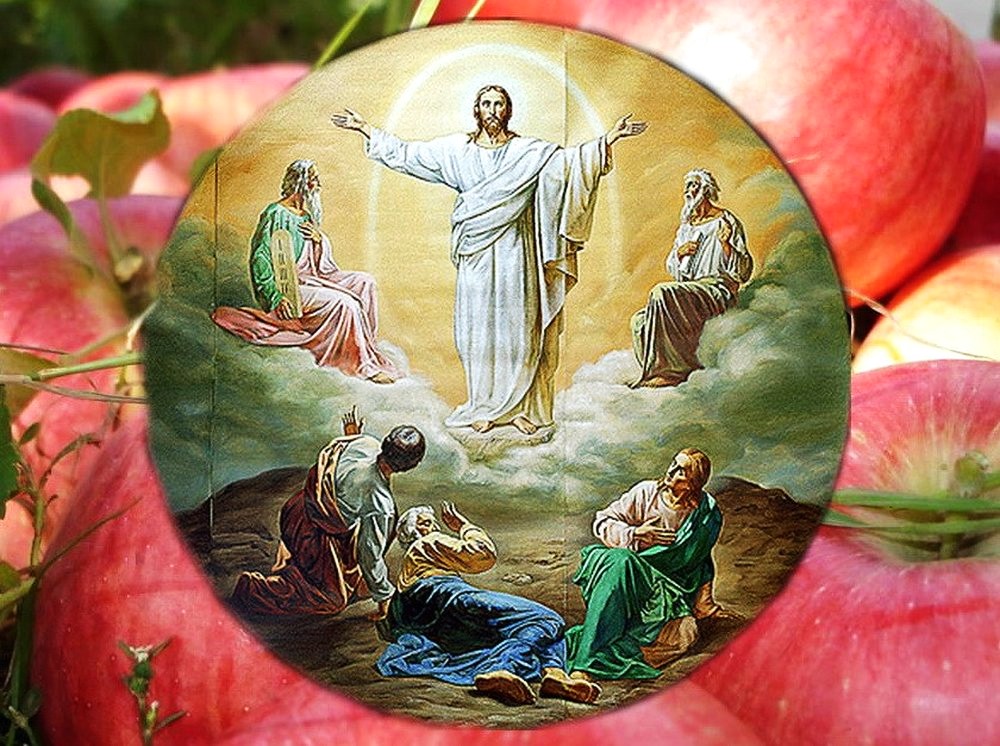 За 40 дней до распятия Он открыл ученикам свое предназначение: умереть мученической смертью во имя человечества. Иисус и три его ученика – Петр, Иоанн и Иаков – поднялись на гору Фавор. Когда Христос начал читать молитвы, Его одежда стала белоснежной, а лицо озарилось светом. Иисус запретил своим ученикам рассказывать о случившемся событии. Когда они спустились с горы, Христос велел собрать яблоки, чтобы освятить их.