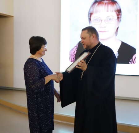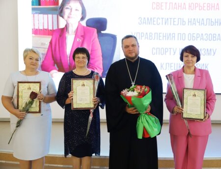 Поздравили педагогов с новым учебным годом и отметили лучших из них гости августовский педагогической конференции. Поблагодарил педагогов за тесное сотрудничество и плодотворную работу по духовно-нравственному воспитанию детей благочинный Клецкого церковного округа иерей Андрей Евшель. Грамоты из рук священнослужителя принимали директор Грицевичской СШ Наталья Авдей, учитель Яновичской СШ Ирина Акуленок, заместитель начальника управления по образованию, спорту и туризму РИК Светлана Стадник.