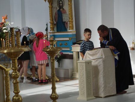 – Хочу сказать, что с каждым годом все больше и больше ребят приходят в церковь, чтобы получить благословение на учебу, попросить у Бога сил и терпения для получения знаний, – рассказал настоятель прихода Воскресенского храма – благочинный Клецкого церковного округа иерей Андрей Евшель. – Сейчас, например, наблюдаем малышей-дошколят: они тянутся за старшими сестренками и братиками, и подражая им идут на Причастие. Это похвально, потому что некоторые ребята потом записываются и в нашу Воскресную школу, чтобы глубже изучать православную веру.