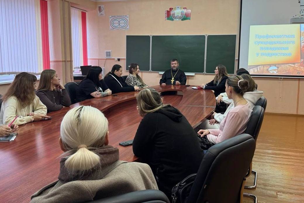 По благословению благочинного Клецкого церковного округа иерея Андрея Евшеля принимал участие в важной для взрослых беседе протоиерей Валерий Вечорко, настоятель прихода Крестовоздвиженского храма деревни Цепра.