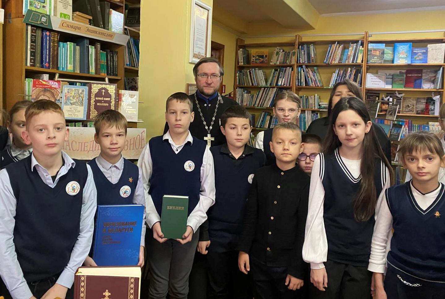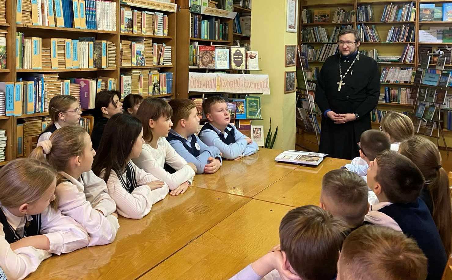 В школьной библиотеке Клецкой СШ №3 прошел интерактивный диалог «Сохраним духовное наследие». В очередной раз с ребятами побеседовал священник – протоиерей Андрей Гладкий, настоятель прихода храма Покрова Пресвятой Богородицы г.Клецка.