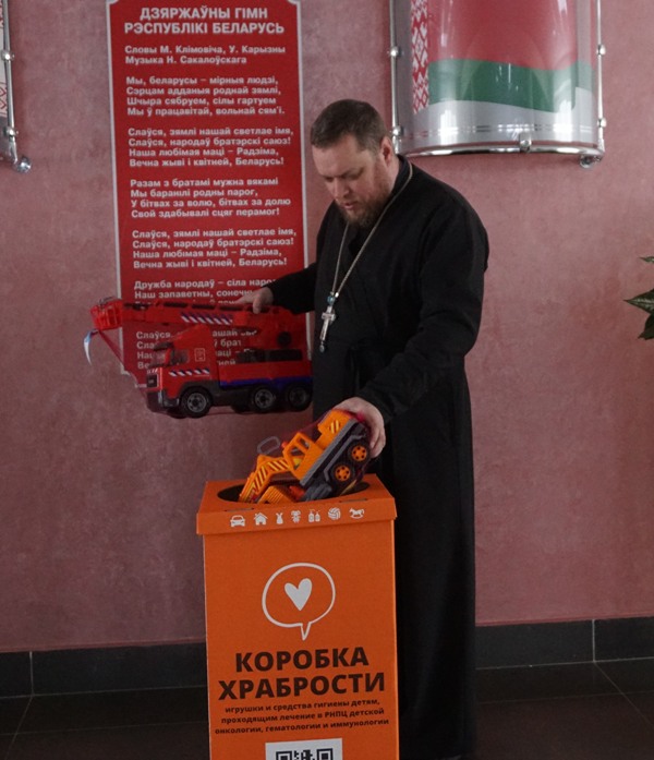 – Мы готовы поддержать любую добрую акцию, особенно ту, где собираем добрые крупицы добра для самых маленьких, для наших деток. И, конечно, мы не могли не поучаствовать в «Коробке храбрости», и принести частичку добра от наших прихожан, от духовенства Клецкого благочиния. Пользуясь случаем, призываем всех добрых людей поучаствовать в этом добром и богоугодном деле. Никогда рука дающего не оскудевает. Поэтому, мои хорошие, поучаствуйте, сотворите доброе дело, а Господь вам воздаст!