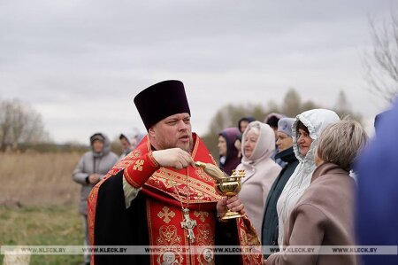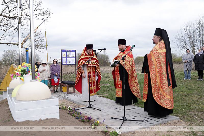 Чин освящения совершил благочинный Клецкого церковного округа, настоятель храма Воскресения Христова г.Клецка иерей Андрей Евшель в сослужении настоятеля храма Покрова Пресвятой Богородицы г.Клецка протоиерея Андрея Гладкого и клирика храма Воскресения Христова г.Клецка иеромонаха Серапиона (Сенькевича).