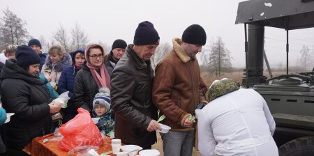 Горячий чай и сытная каша полевой кухни Клецкого сельскохозяйственного профессионального колледжа поднимут настроение не только тем, кто взбодрится ледяной водой, но и всем, кто придет в это время на водоем.
