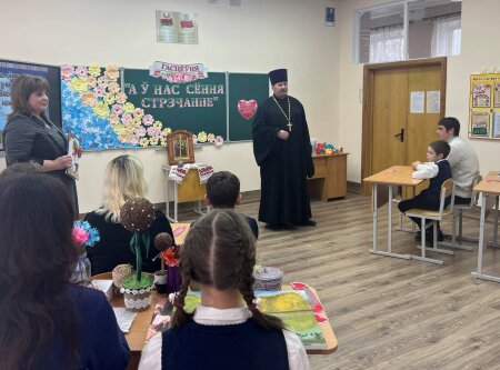 Духовным воспитанием детей следует заниматься с раннего возраста. Об этом говорят священники на проповедях в храмах, в беседах с родителями. Изучение азов православия – это часть программы факультативов по основам православной культуры, преподавание по которым осуществляется в учебных заведениях Клецкого района. Очередной практический урок прошел для пятиклассников Заостровечской средней школы. Занятия 15 февраля проводились по теме «А у нас сегодня Сретение…», и были посвящены одному из 12-ти двунадесятых праздников – Сретению Господню. В тот день на урок были приглашены не только ребята, но также их родители, дедушки и бабушки.