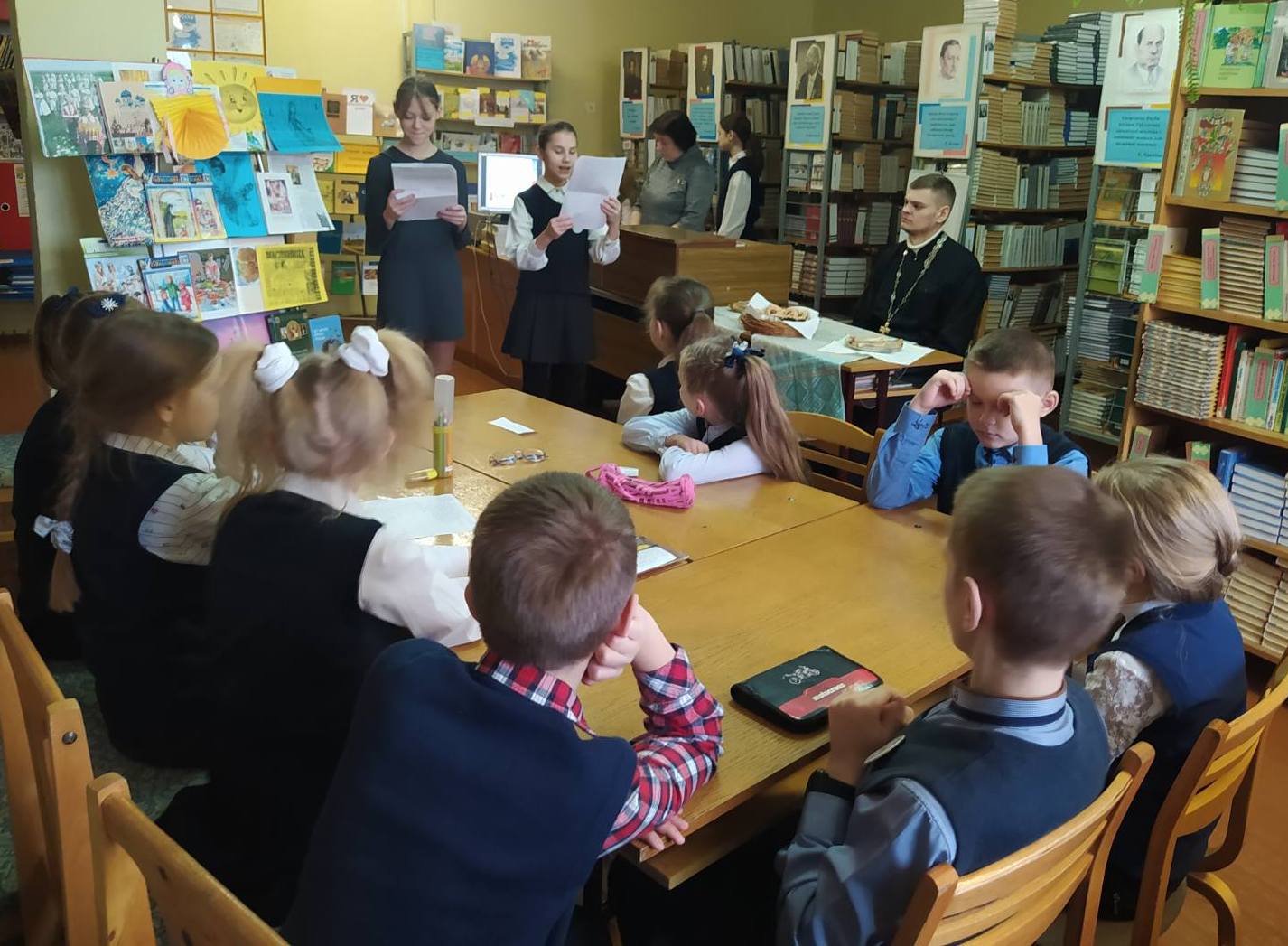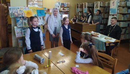 А еще во время занятий были игры, загадки, толкование пословиц, инсценировка стиха «Ангел по небу летел». Слушали ребята вместе с педагогами и священником душевную музыку и читали стихи, и все угощались сладостями.